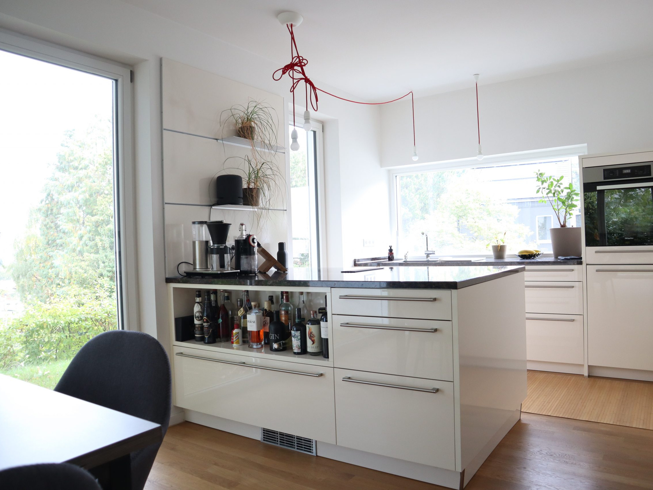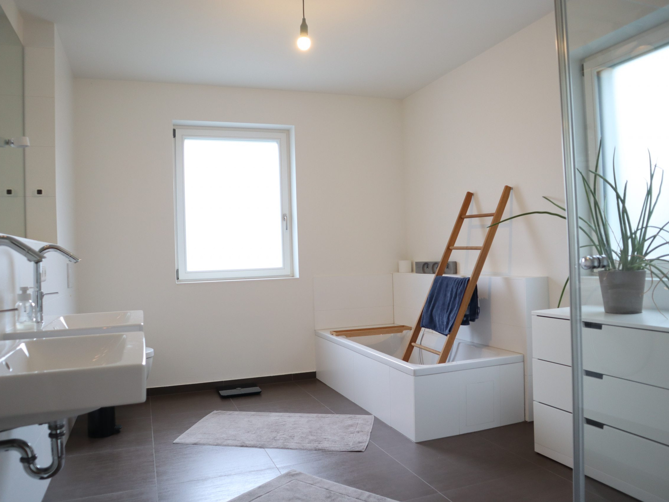 Die offenen und hochwertigen Einbauküchen fügen sich kompromisslos in das offen gestaltet Raumkonzept ein. Die Tageslichtbäder verfügen über eine Badewanne, bodenebener Duschen, WC sowie einen Doppelwaschtisch.