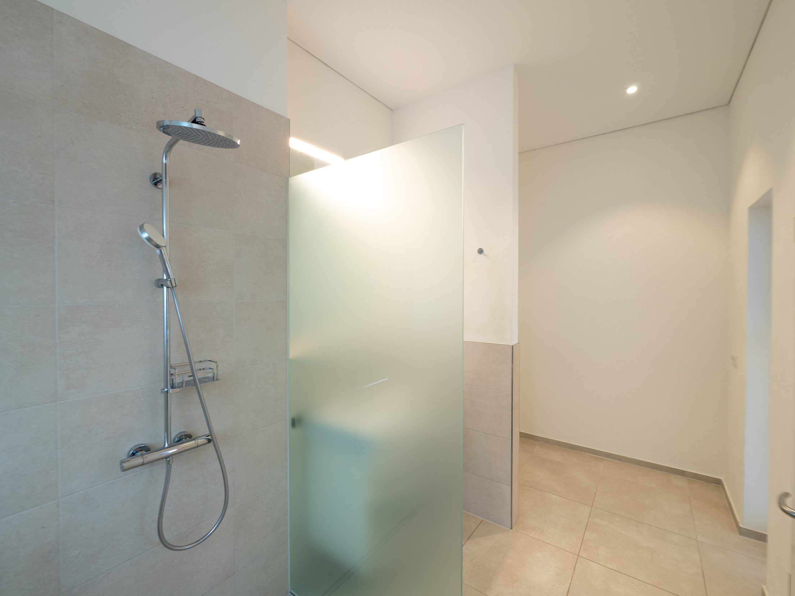 - Tageslicht-Badezimmer mit Regendusche, Waschtisch und Unterbauschrank, Spiegel inkl. Beleuchtung, WC und Bidet, Waschmaschinen- und Trockneranschluss