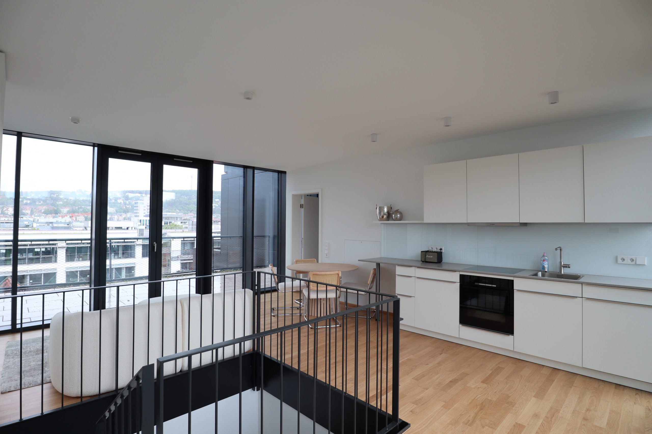 Die zur Vermietung kommenden 16 exklusiven Stadtwohnungen sind kompakt geschnitten und mit modernsten Materialien ausgestattet. Durch die vielen Glasfronten sind diese hell und lichtdurchflutet. Die Wohnungen sind mit Einbauküchen ausgestattet. Jede Einheit verfügt über einen Freibereich; Balkon oder Dachterrasse. Von den Dachterrassen genießet man einen gigantischen Blick. Das Wohnen in der Calwer Passage verspricht ein einzigartiges, lebendiges und urbanes Leben in der Innenstadt. Eine großzügige Tiefgarage befindet sich im Gebäude.