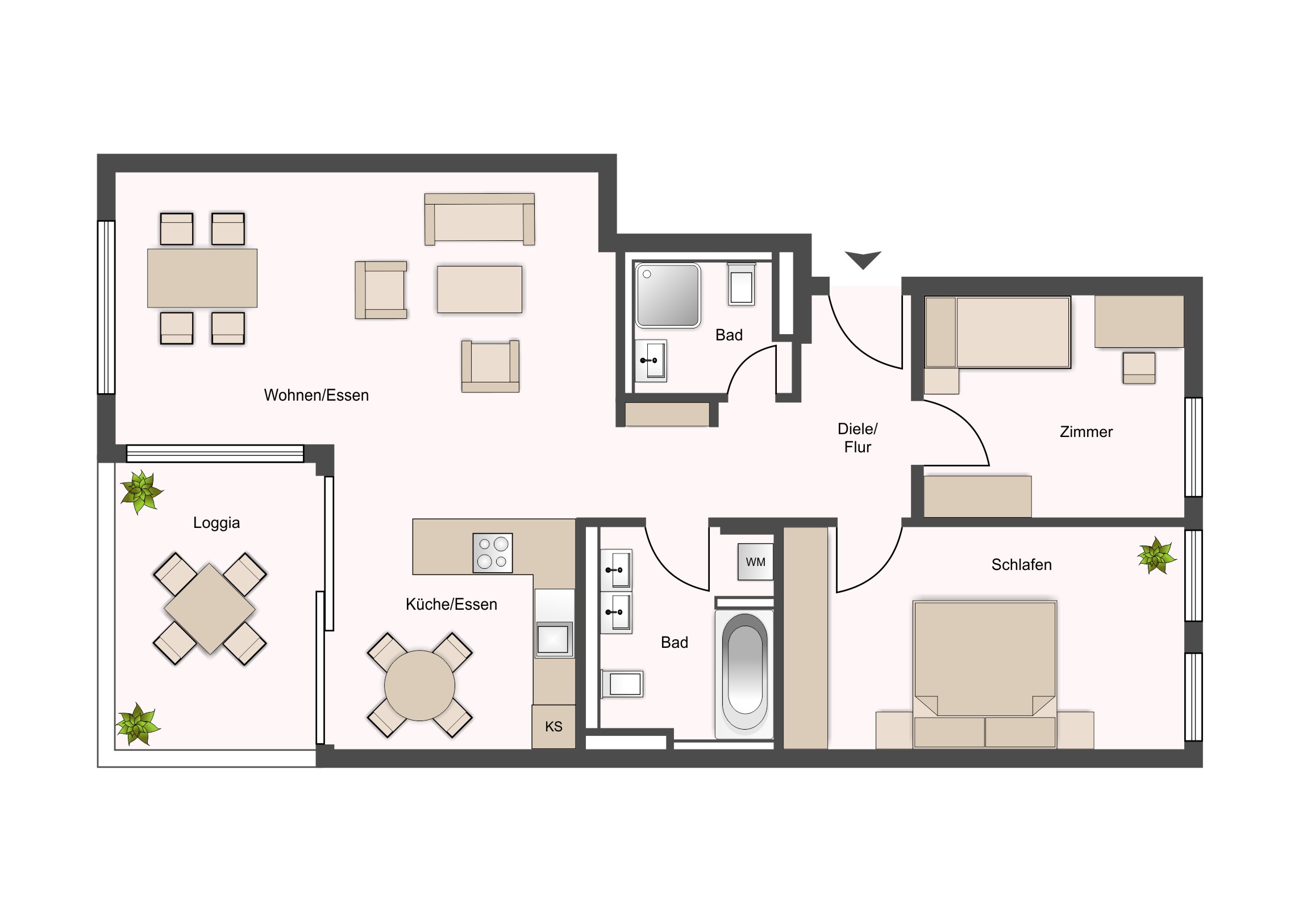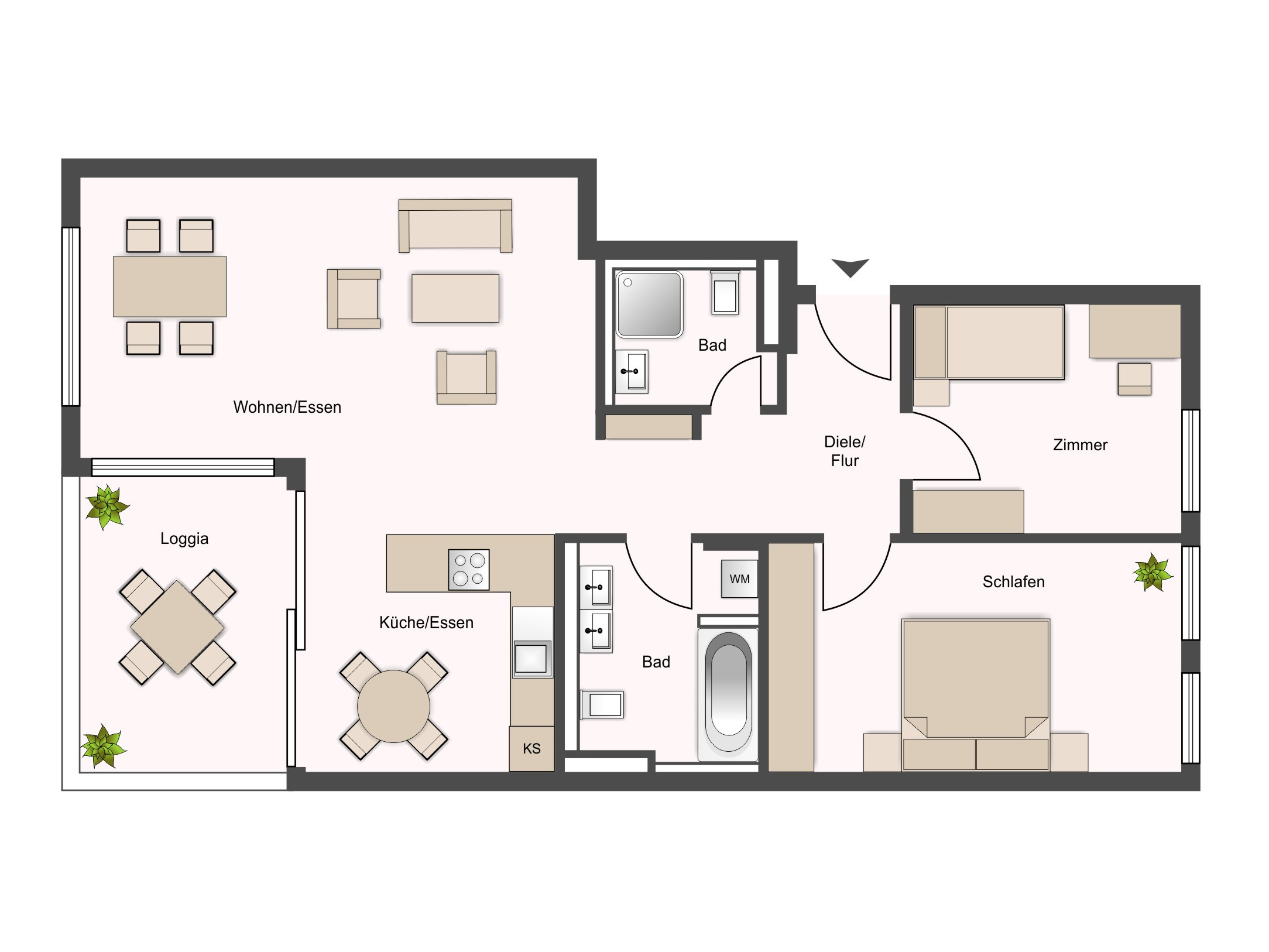 Die zur Vermietung kommende 3-Zimmer-Wohnung ist ideal für Paare und Familien. Aufgrund ihres durchdachten Grundrisses bietet die Wohnung flexible Nutzungsmöglichkeiten.