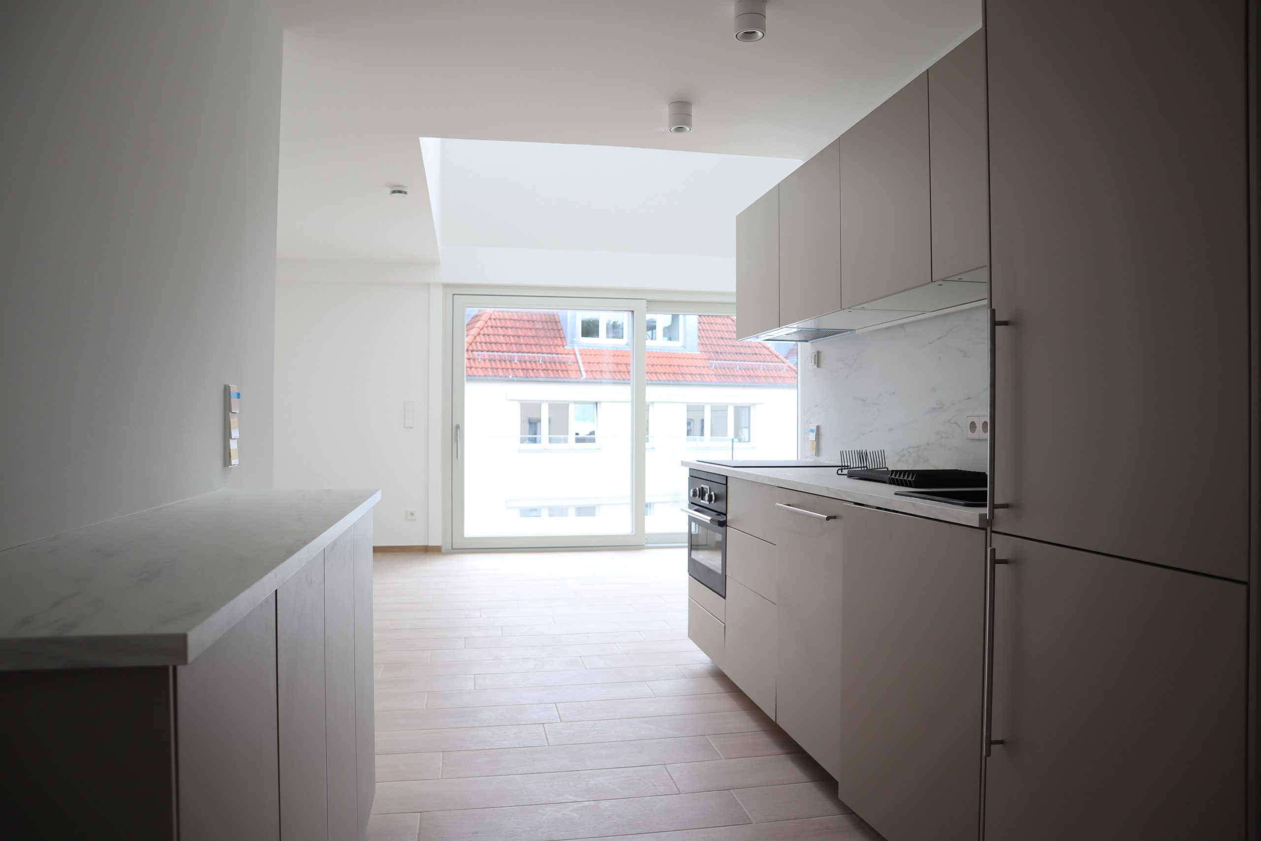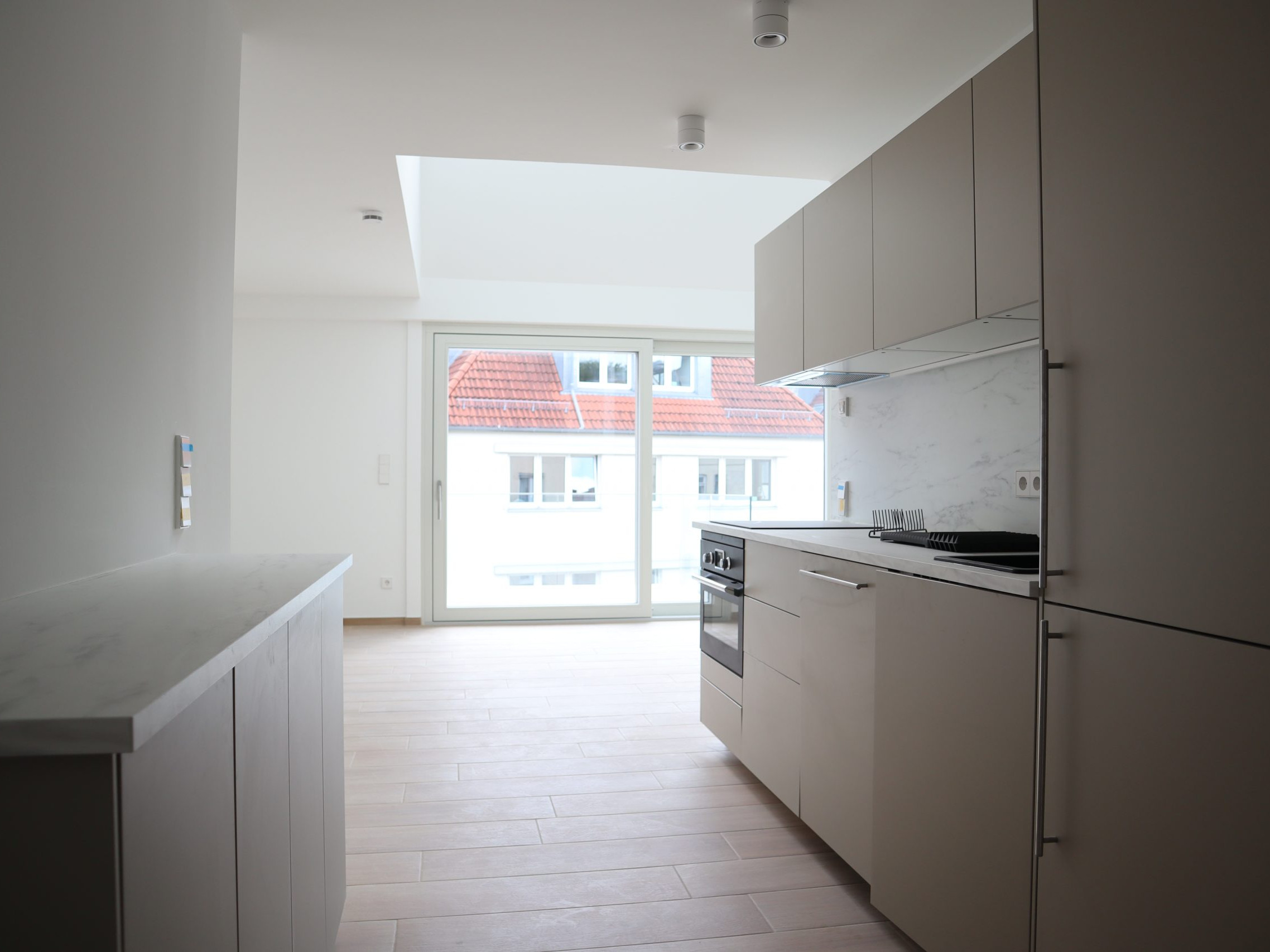 Diese zur Vermietung kommende Neubau-Maisonettewohnung mit drei Zimmern und ca. 87 m² erstreckt sich über das 4. Ober- und das Dachgeschoss und ist bequem per Aufzug erreichbar. Großzügige Fensterfronten sorgen für lichtdurchflutete Räume und verbinden die Innen- mit der Außenwelt.