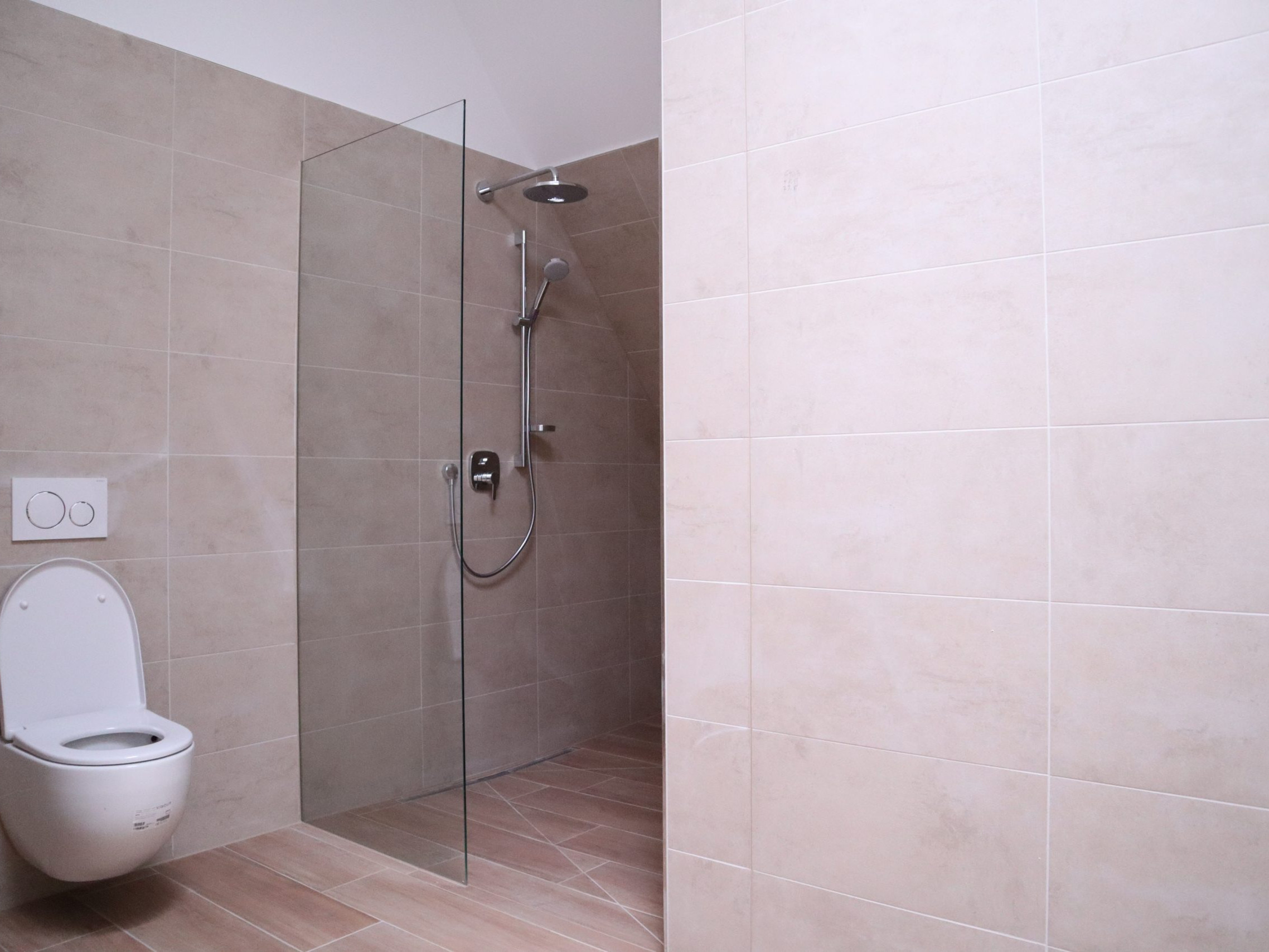 Über eine Treppe gelangt man in die obere Ebene mit einem großzügigen Schlafzimmer, einer Ankleide sowie einem en-suite Bad in hochwertiger Ausstattung. Zusätzlich steht eine weitere Loggia zur Verfügung.
