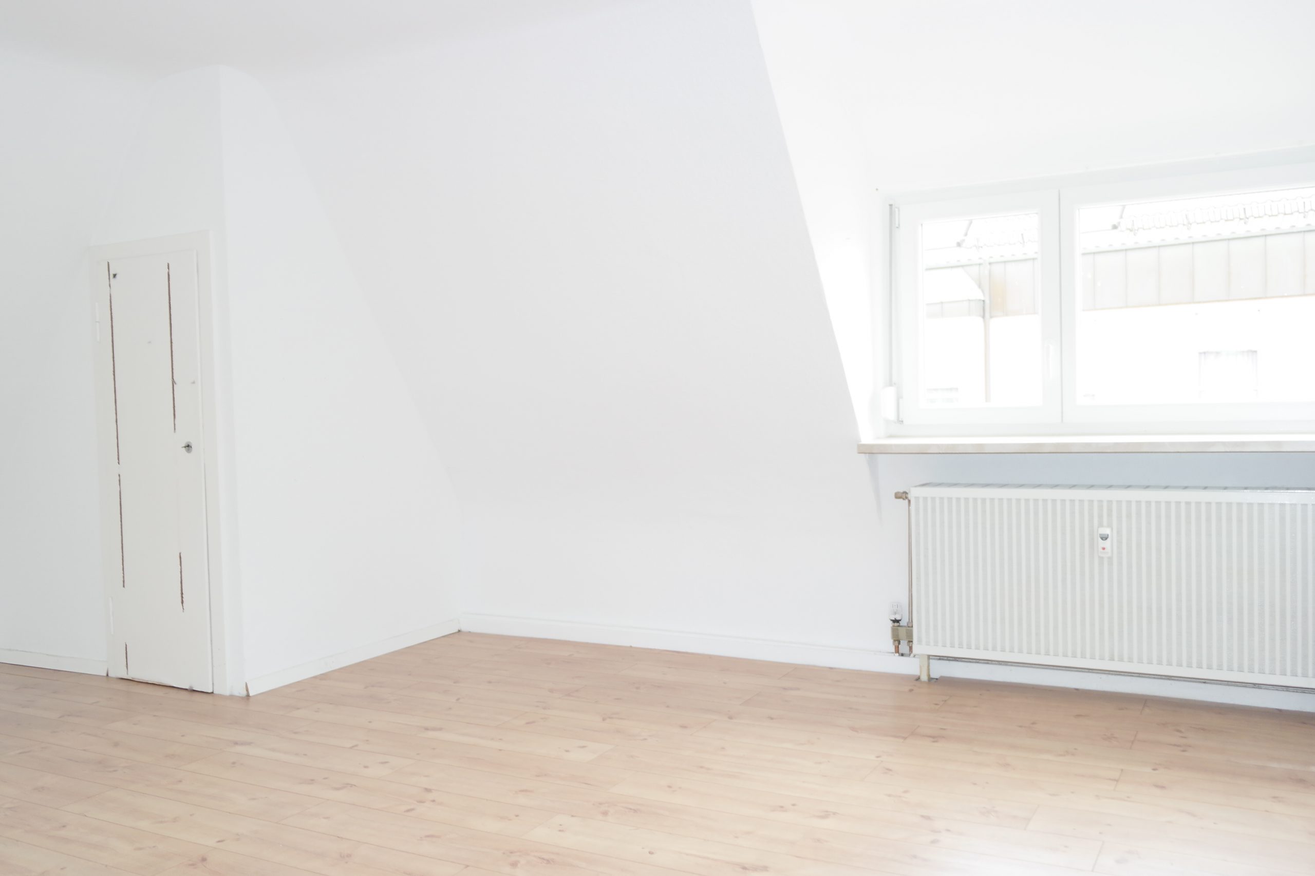Bei der zur Vermietung kommenden Dachgeschoss-Wohnung handelt es sich um eine helle, kompakte 4-Zimmer-Wohnung. Sie ist mit einer neuen Einbauküche ausgestattet, und in der gesamten Wohnung wurde Laminat-Fußboden verlegt. Im Tageslichtbad befindet sich ein Anschluss für die Waschmaschine. Zusätzliche Lagermöglichkeiten bieten die Dachbühne sowie ein Kellerabteil.