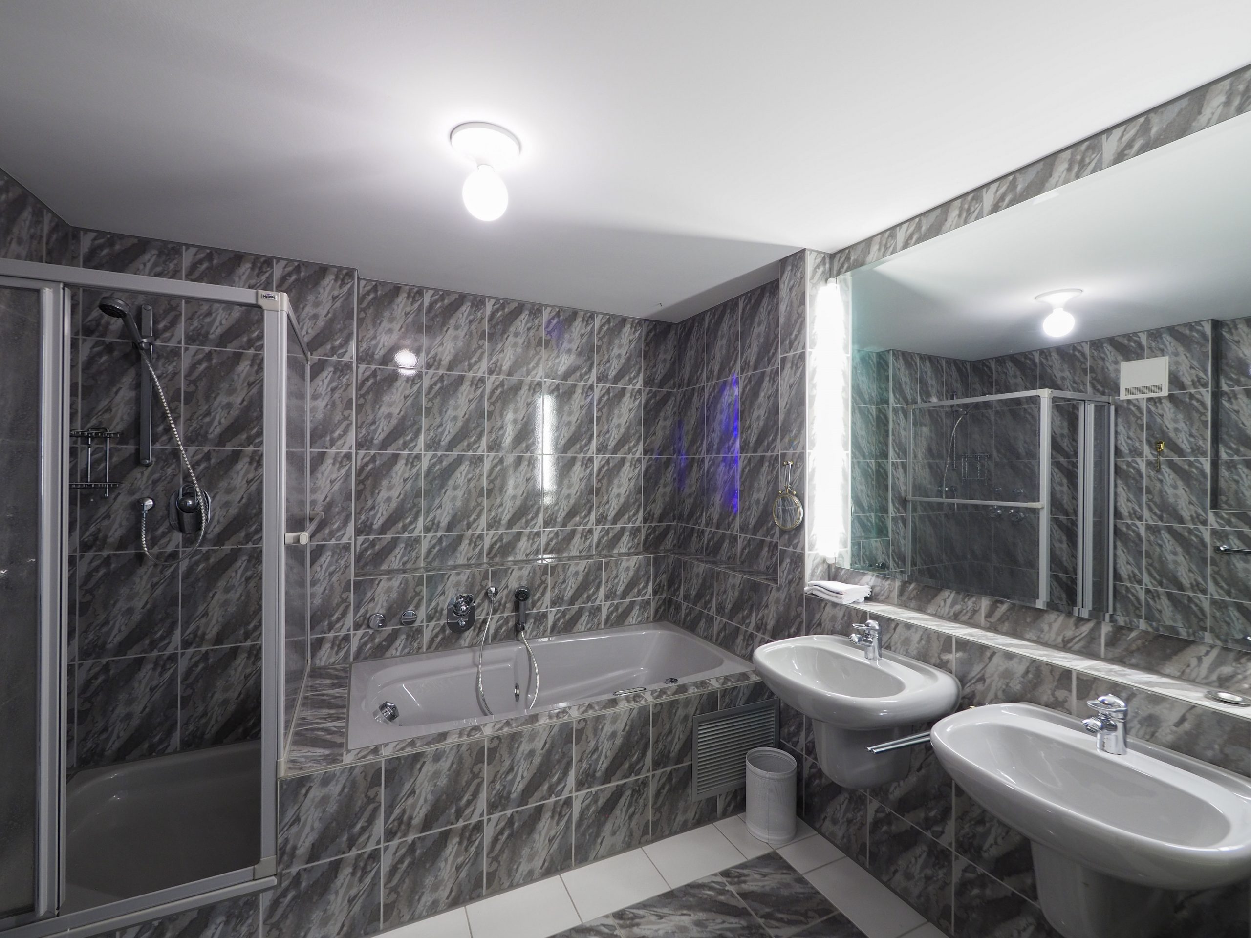 - En-Suite-Bad mit Badewanne, separater Dusche, WC und Spiegel