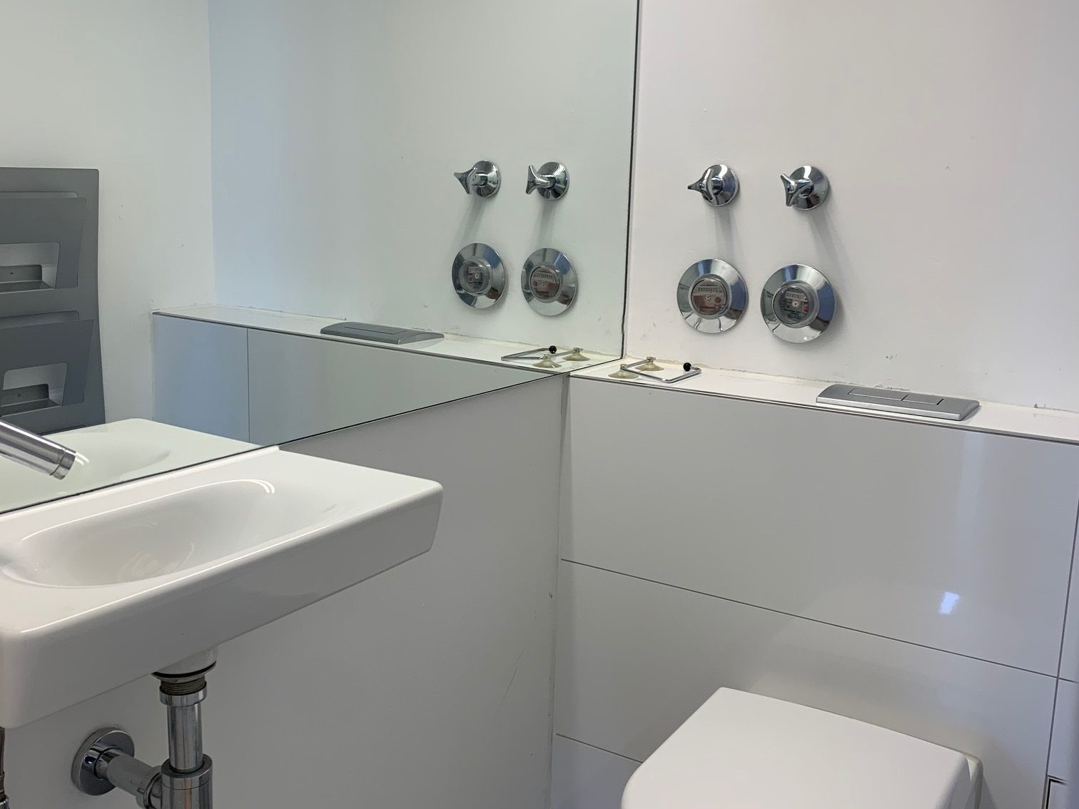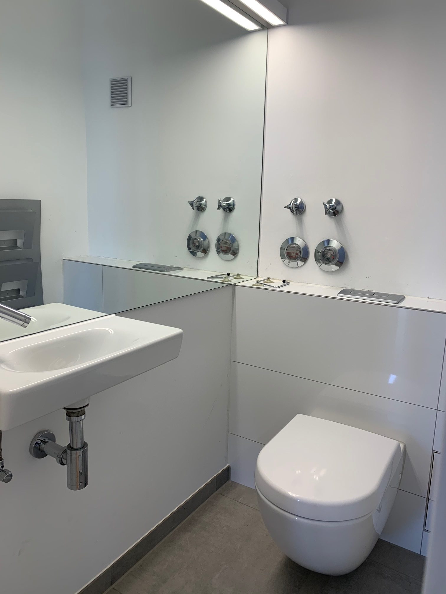 Das Bad und das Gäste-WC werden aktuell renoviert – ebenso wird der Parkettboden aufbereitet und die Wände frisch gestrichen.