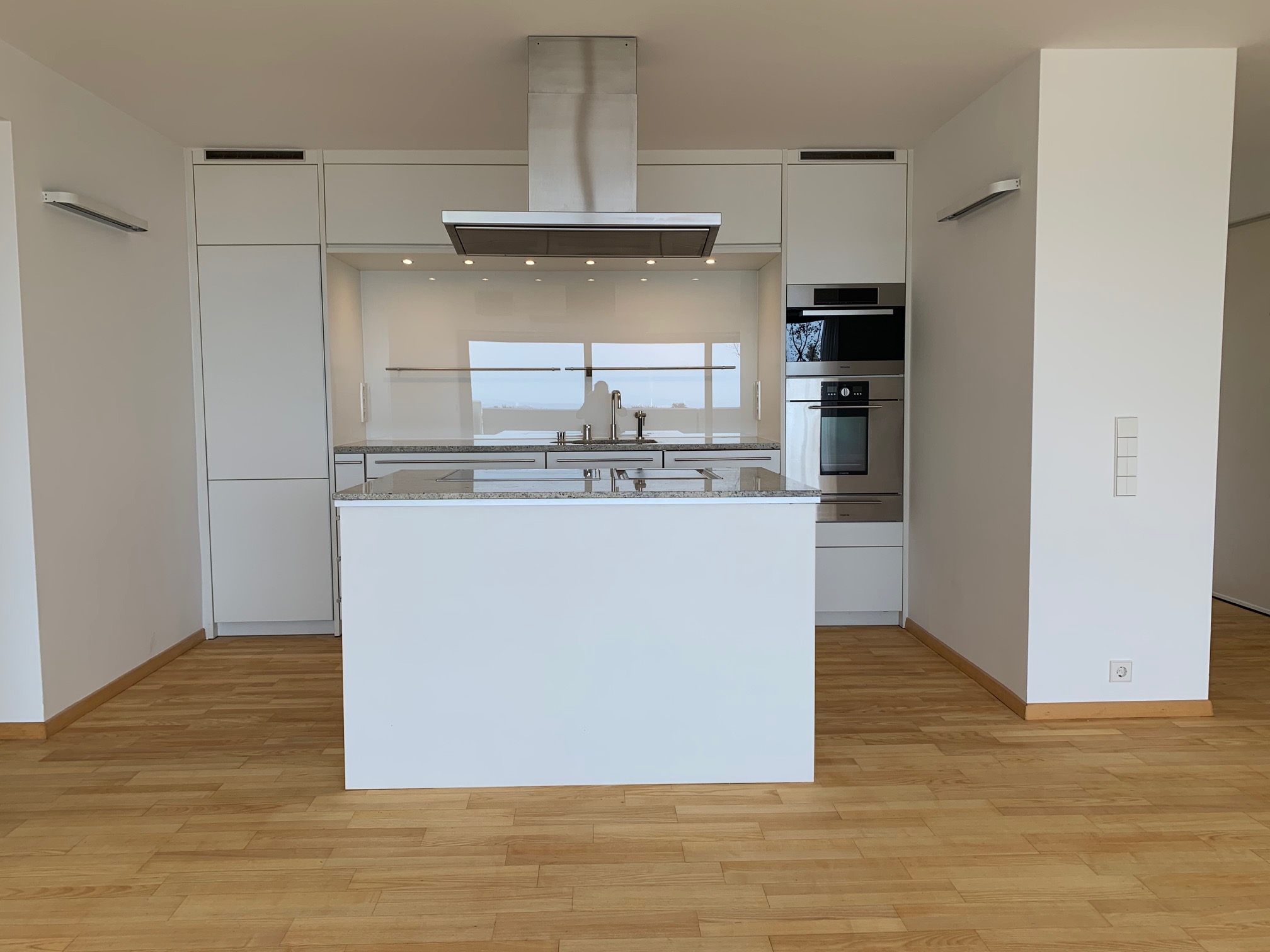 Trockenen Fußes gelangt man von der Tiefgarage über einen Verbindungsgang zum Aufzug. Über diesen erreicht man die 2. Wohnetage. Die Wohnung besticht durch ihre hervorragende Wohnlage und ihren durchdachten Grundriss. Vom Wohn – Essbereich mit moderner offener Küche mit Kochinsel gelangt man auf die herrliche Terrasse. Weiter verfügt die Wohnung über ein Gäste-WC, Badezimmer, Schlafzimmer mit begehbarer Ankleide (Einbauten) und ein weiteres Zimmer. Von beiden Zimmern gelangt man auf die weitere Terrasse.