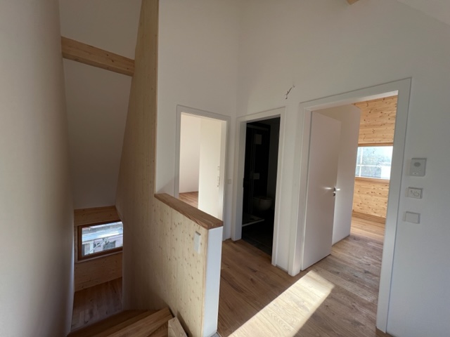 Die Doppelhaushälfte wurde in Massivholzbauweise (Thoma Holz 100 und im KFW 55 Standard) erstellt. Die ökologische Bauweise bietet ein hervorragendes Wohnambiente sowie Energieunabhängigkeit und Nachhaltigkeit. „Living by nature“.