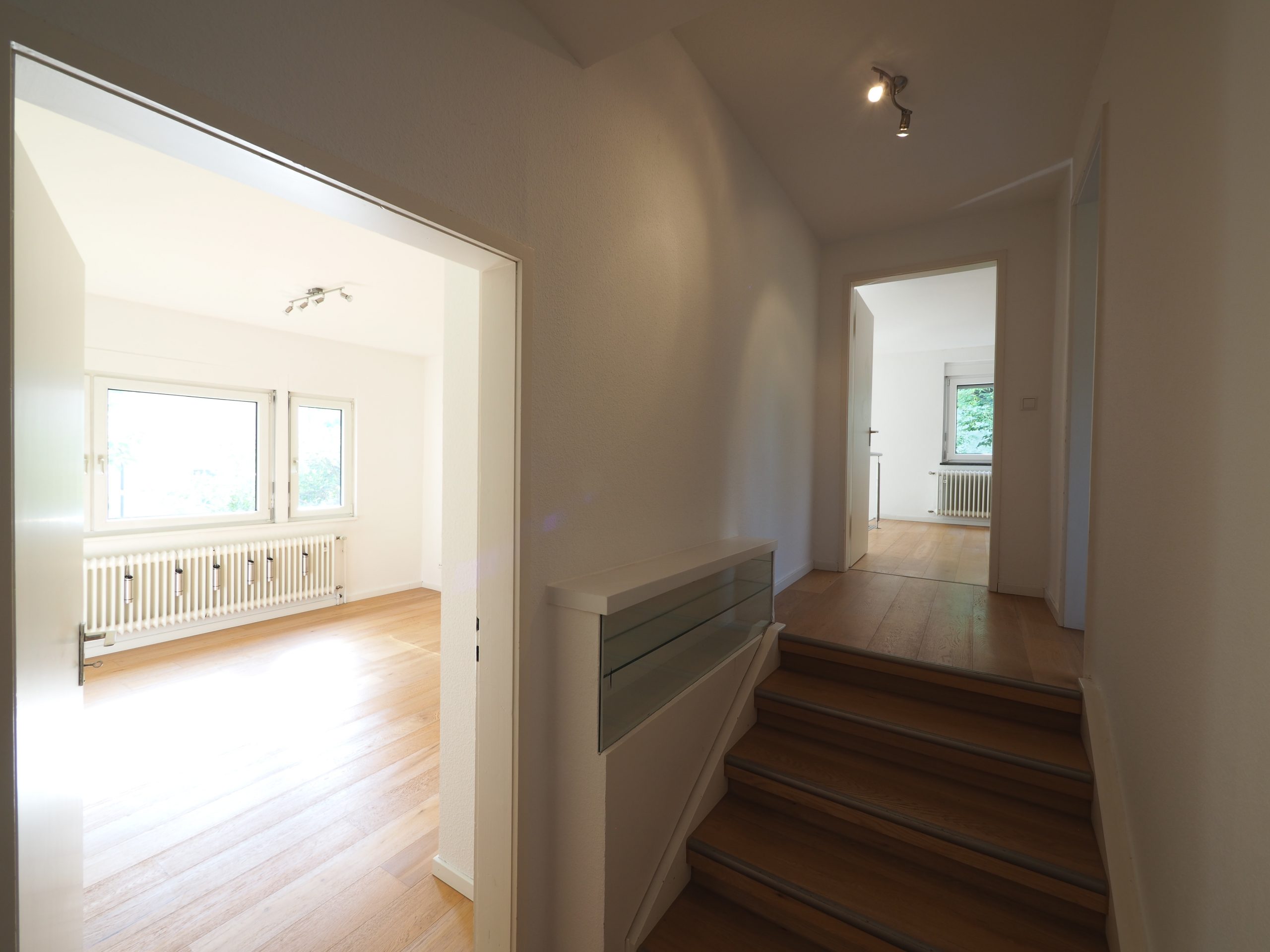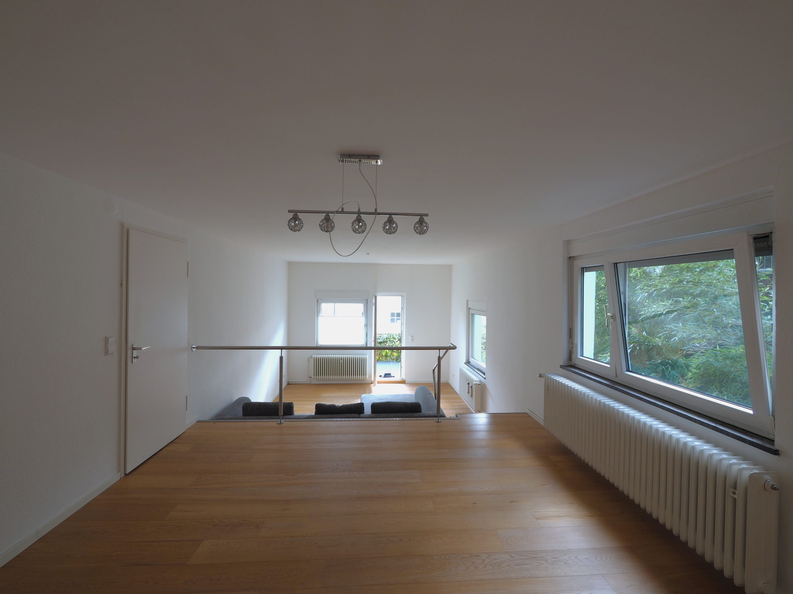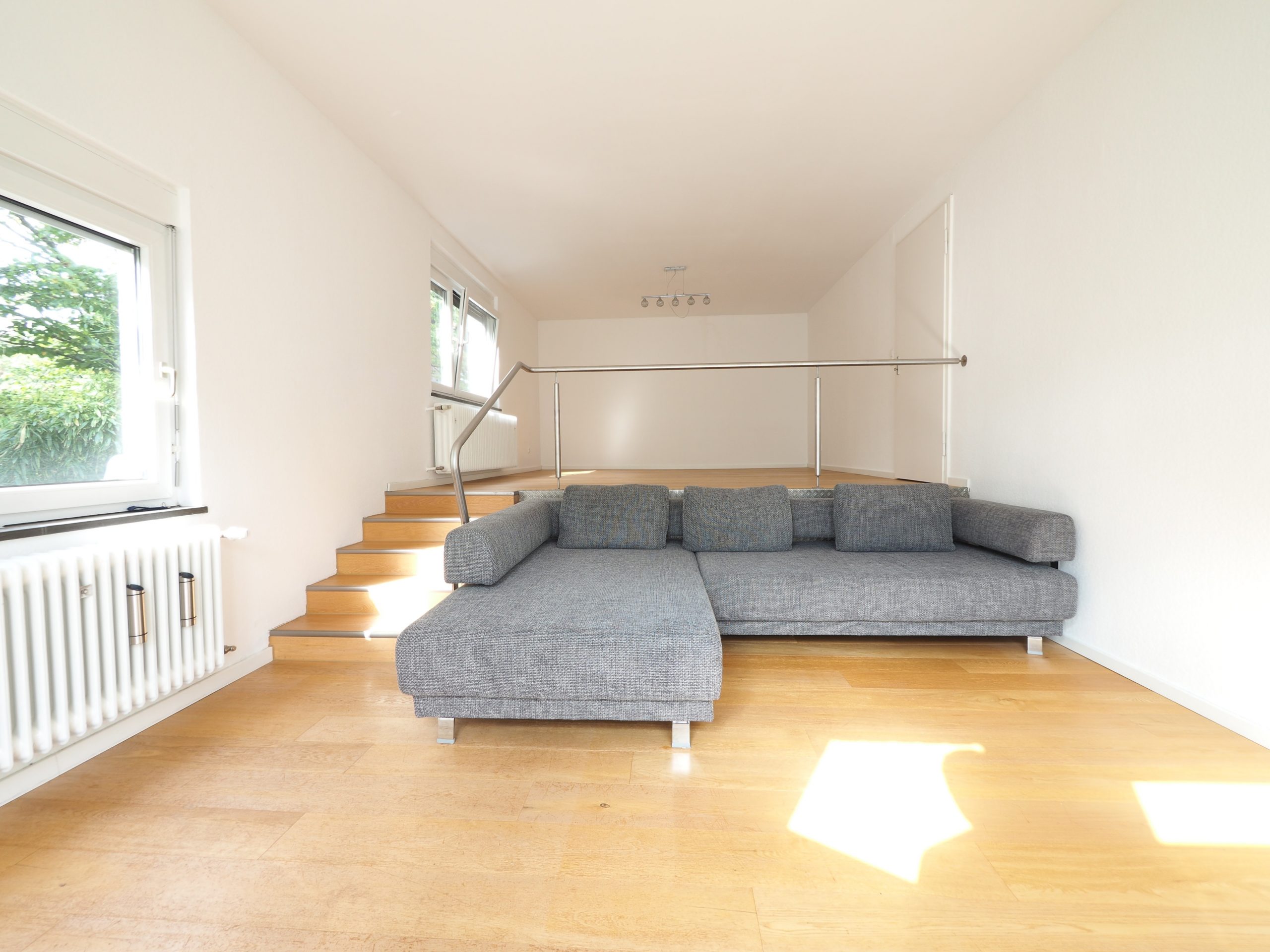 Die Wohnung (Einliegerwohnung) befindet sich im 1. Obergeschoss eines im Jahr 1947 erbauten Wohnhauses. Das Haus wurde 2010 komplett renoviert. Die Wohnung besticht durch ihre außergewöhnliche und attraktive Raumaufteilung auf unterschiedlichen Wohnebenen.