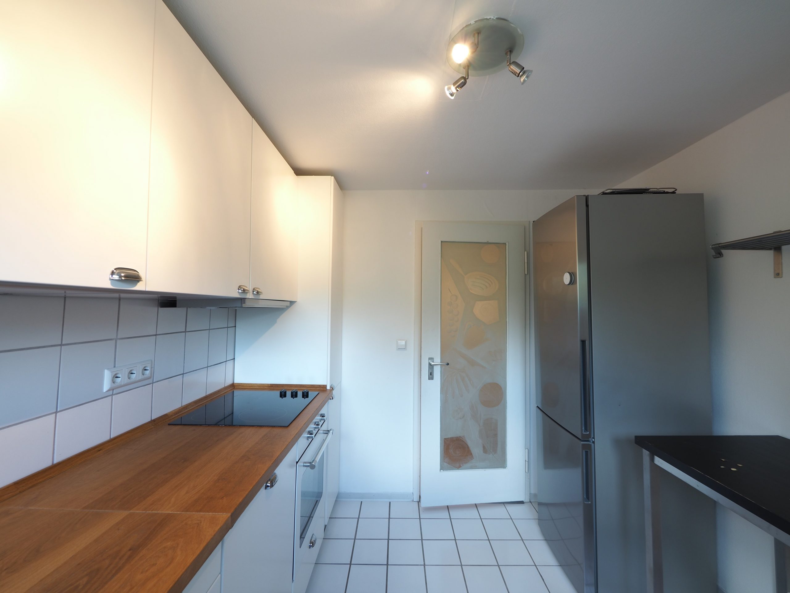 - Weiße Einbauküche mit Holzarbeitsplatte (3 Jahre alt)