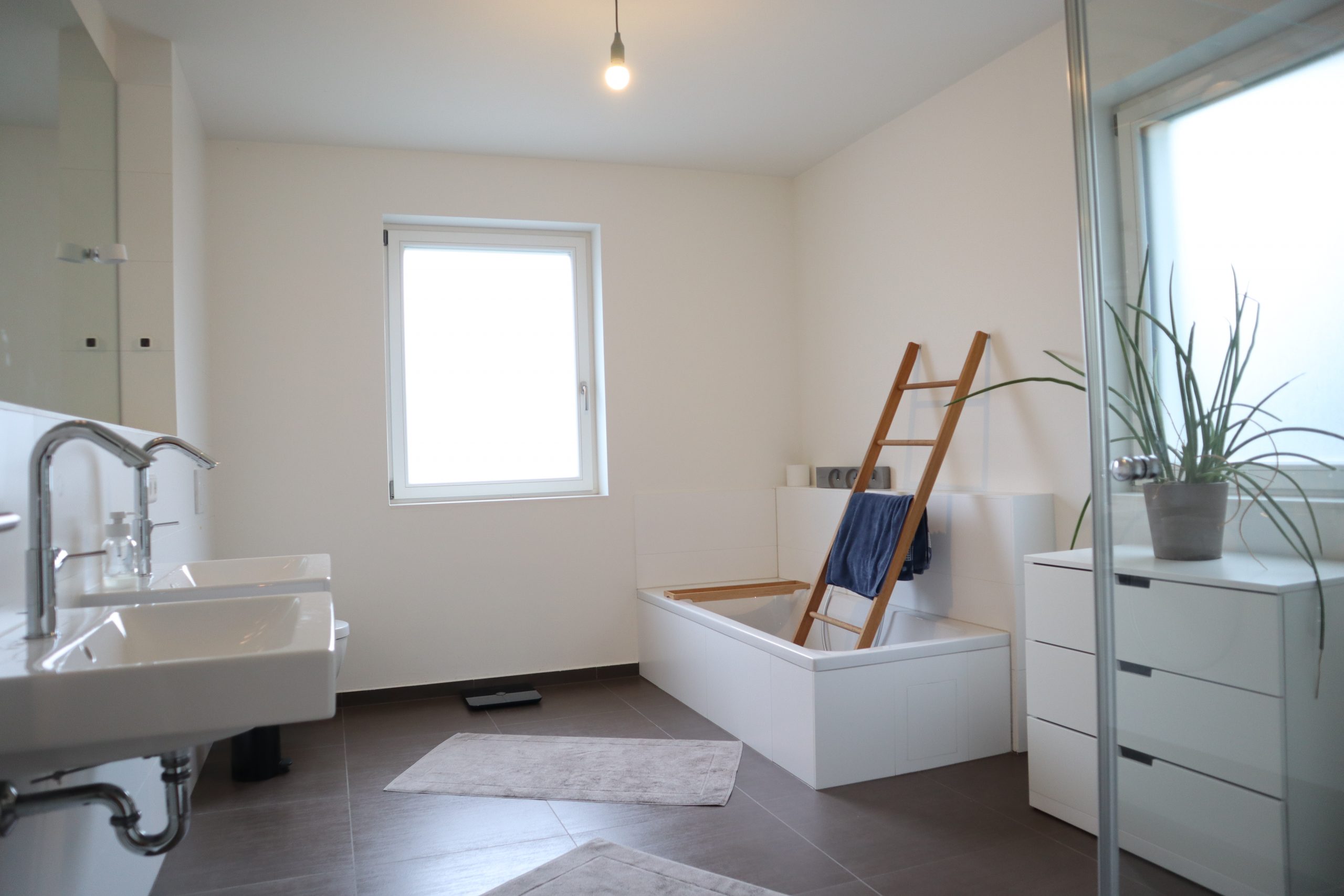 Die offenen und hochwertigen Einbauküchen fügen sich kompromisslos in das offen gestaltet Raumkonzept ein. Die Tageslichtbäder verfügen über eine Badewanne, bodenebener Duschen, WC sowie einen Doppelwaschtisch.