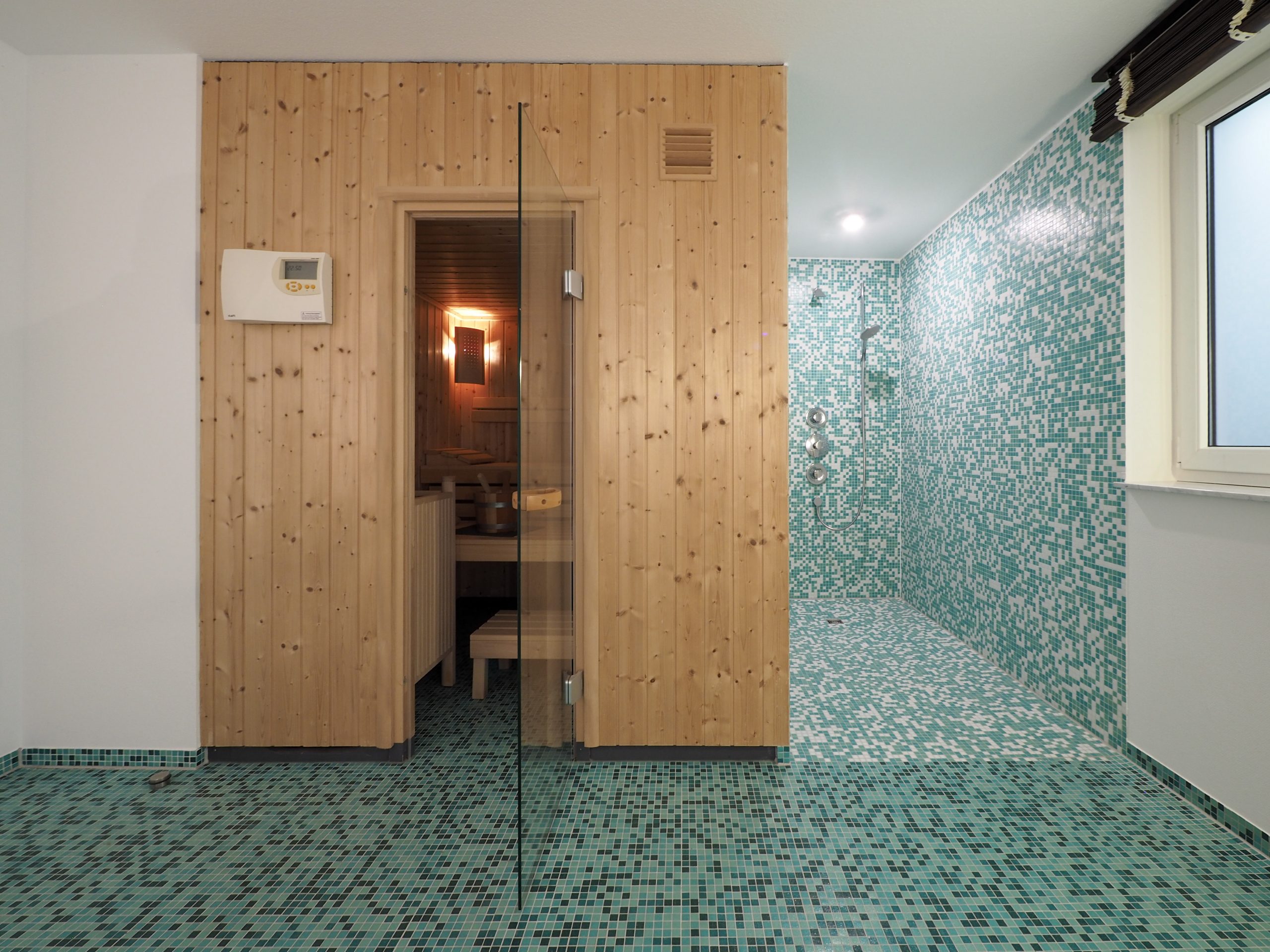 - Saune mit Dusche und Fitness- / Entspannungsraum; Einbauschrank