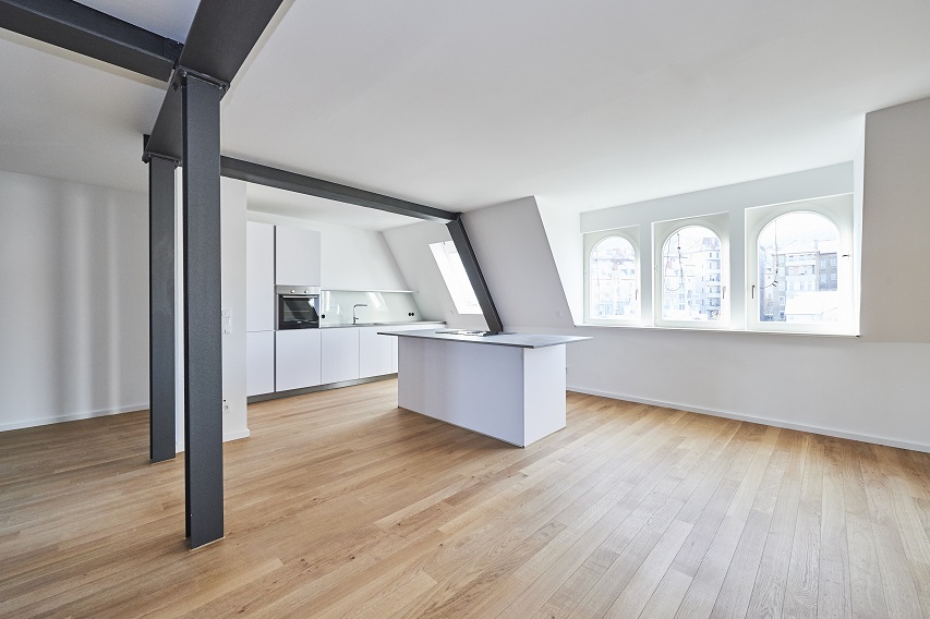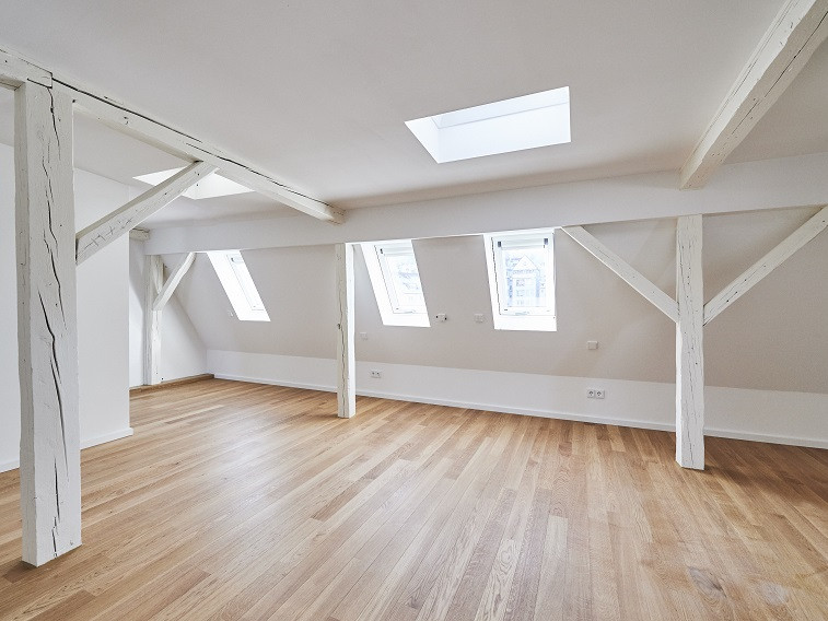 Die Wohnung erstreckt sich über die 2 oberen Wohnebenen (4. Ober- und Dach-geschoss) und verfügt über einen attraktiven Grundriss welcher großzügiges, lichtdurchflutetes Wohnen bietet.