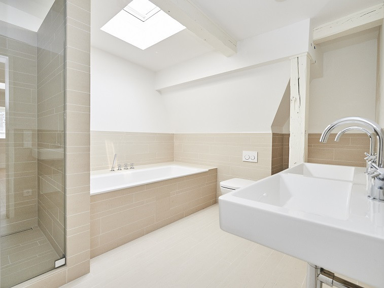 • Offene Treppe ins Dachgeschoss zur Galerie und Zugang zum großzügigen Schlafbereich mit Ankleide und en-suite-Bad (Tageslichtbad ausgestattet mit Badewanne, Dusche inkl. Duschbodenheizung, Doppelwaschtisch, WC und Bidet)