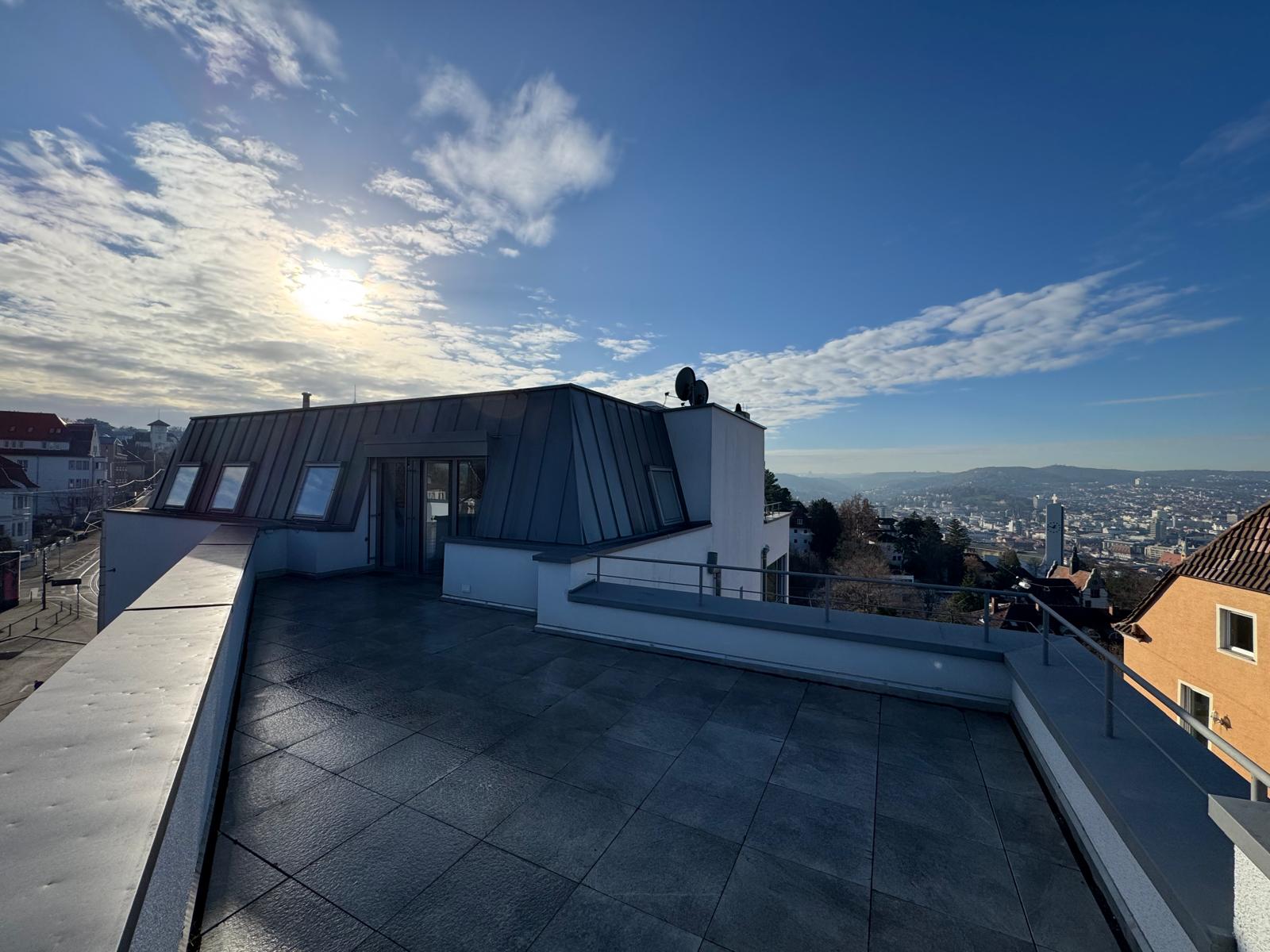 In privilegierter Aussichtslage am „Peak“ des Bubenbads, einer der renommiertesten Wohnadressen Stuttgarts, thront dieses außergewöhnliche Penthouse-Loft über der Stadt. Die erhöhte Hanglage eröffnet einen beeindruckenden Panoramablick über das Stuttgarter Zentrum und verbindet urbane Nähe mit exklusiver Ruhe. Eine Lage, die höchsten Ansprüchen gerecht wird und ein Lebensgefühl zwischen Rückzug und Repräsentation vermittelt.