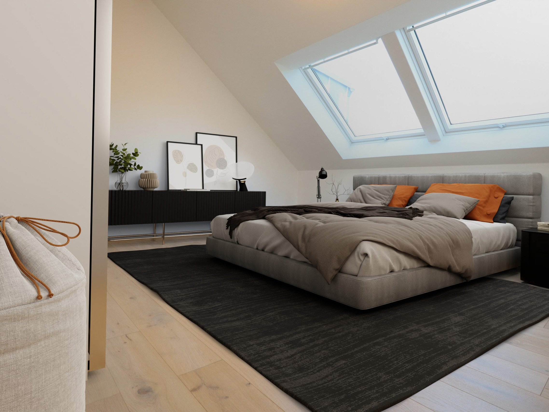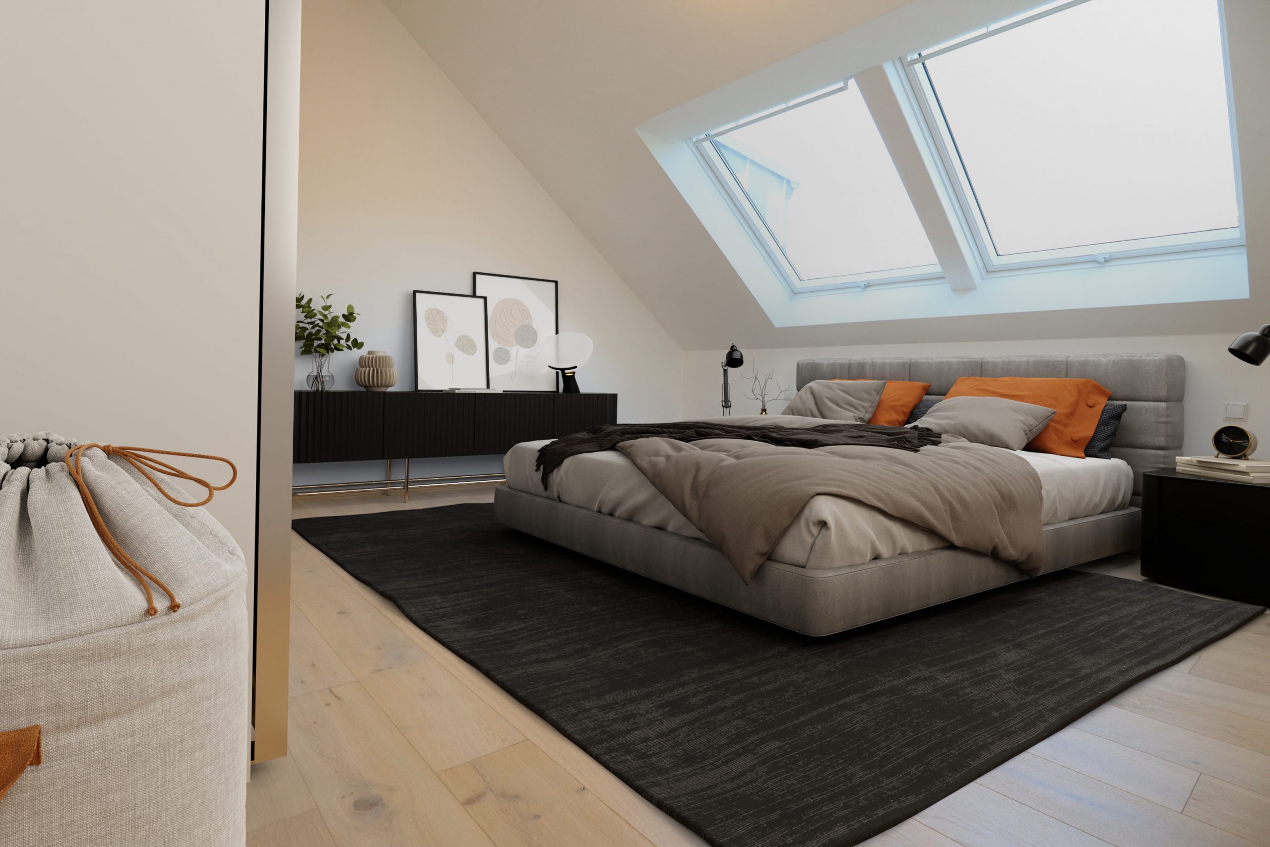 Das vorhandene Gäste-WC wurde mit einer Dusche und einem Waschbecken als Gäste- bzw. Kinderbadezimmer ausgebaut. Das moderne und hochwertig ausgestattet Tageslichtbad en Suite, mit einer großen bodenebenen Dusche, Doppelwaschtisch, einer Badewanne sowie WC ist bequem vom Schlafzimmer aus zu erreichen. Ein weiteres Zimmer ermöglicht genügend Flexibilität für sämtliche Wohnkonzepte.