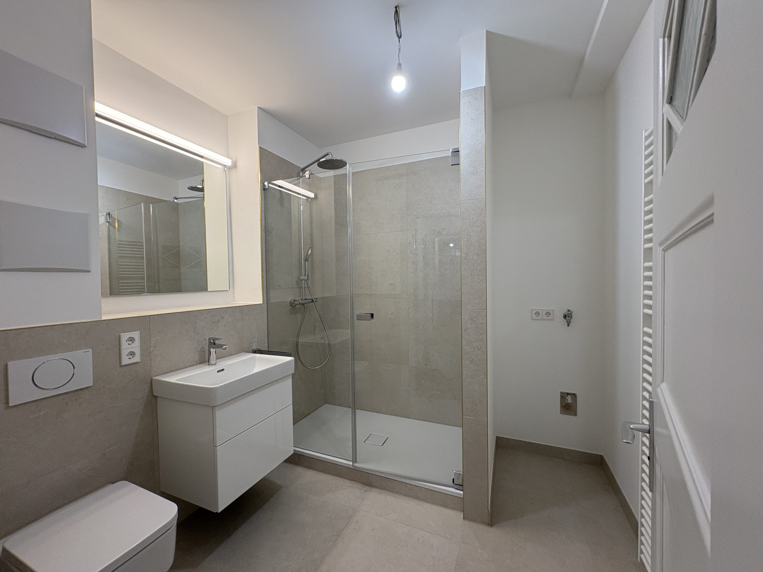 - Hochwertig ausgestattetes Badezimmer mit großer Dusche und WC