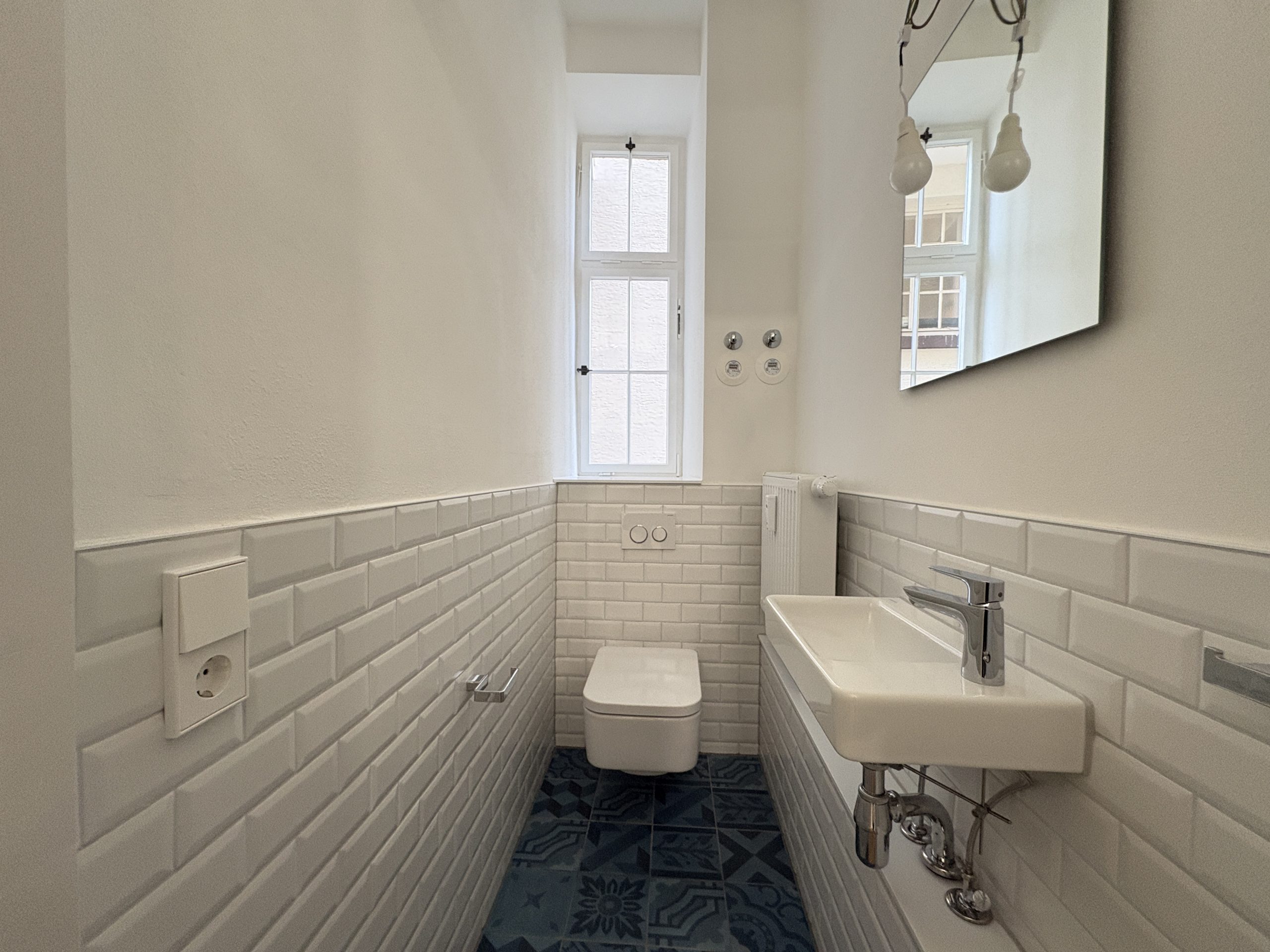 - Großflächige Fliesen + Fliesen im Stil des Baujahres