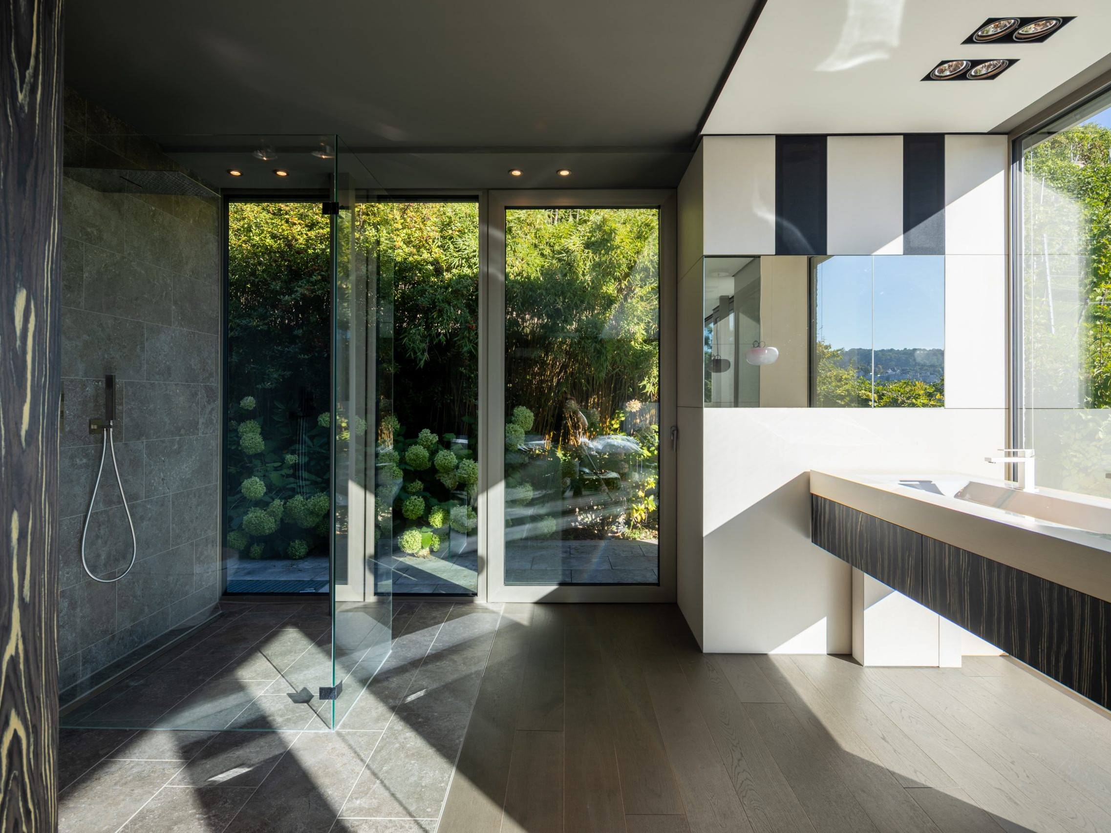 - Großzügige, lichtdurchflutete Räume mit Panoramaverglasung und Schiebeelemente, elektrische Raffstore