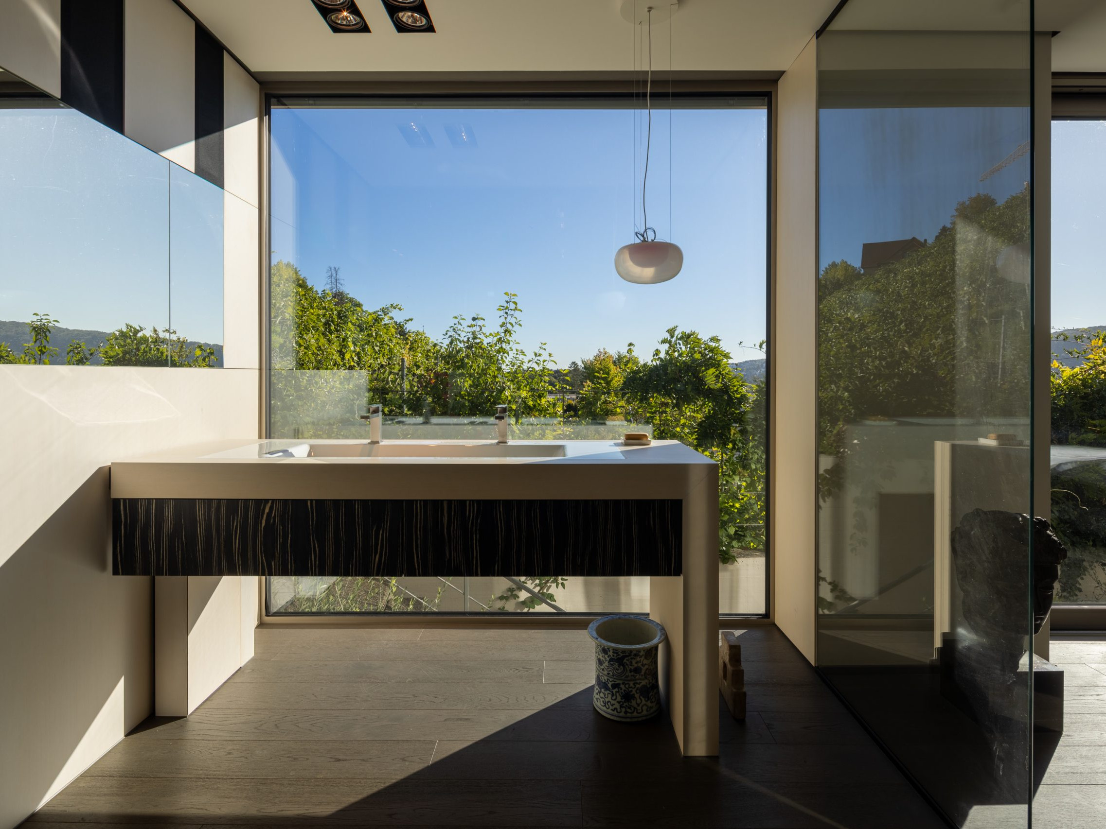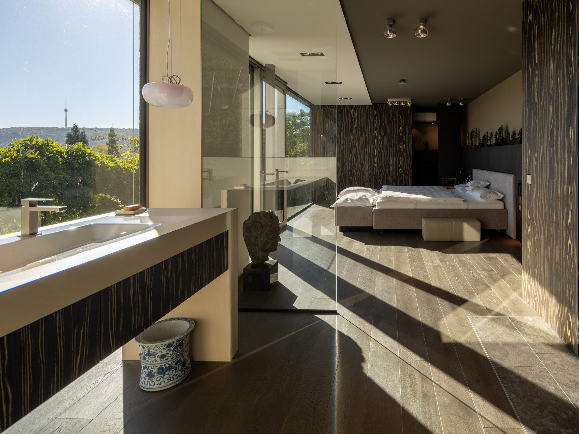Die lichtdurchfluteten Räume verteilen sich auf zwei Ebenen und schaffen ein offenes, elegantes Wohngefühl. Großzügige Panoramafenster holen die umliegende Natur und den herrlichen Blick über Stuttgart direkt ins Haus. Hochwertigste Materialien, eine moderne Haustechnik und ein durchdachtes Raumkonzept verbinden zeitlose Architektur mit zeitgemäßem Wohnkomfort.