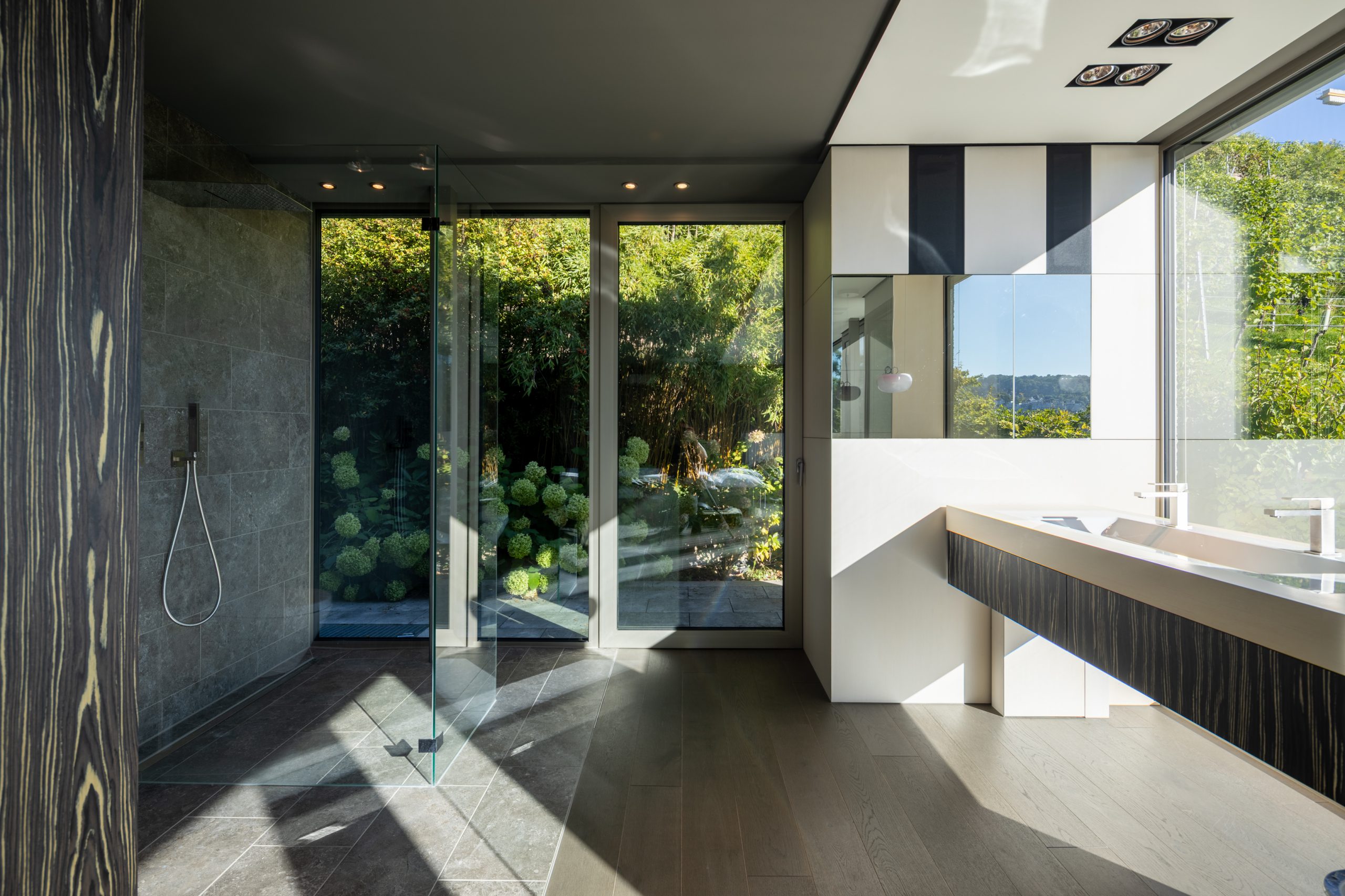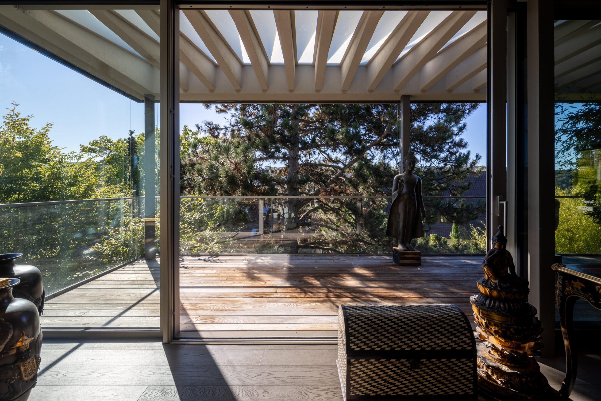 - Großzügige, lichtdurchflutete Räume mit Panoramaverglasung und Schiebeelemente, elektrische Raffstore