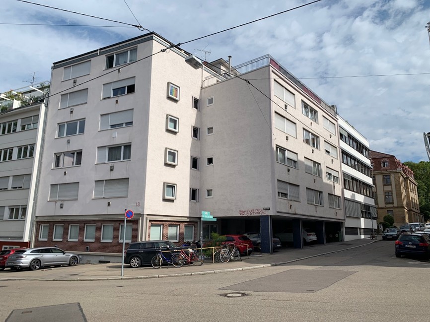 Die zum Verkauf kommende 1-Zimmer-Stadtwohnung befindet sich in einem in den 60er Jahren erbauten Apartmenthaus in zentraler Lage im Gerichtsviertel in Stuttgart-Mitte.